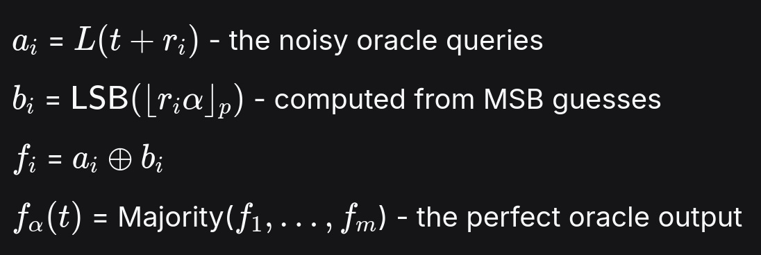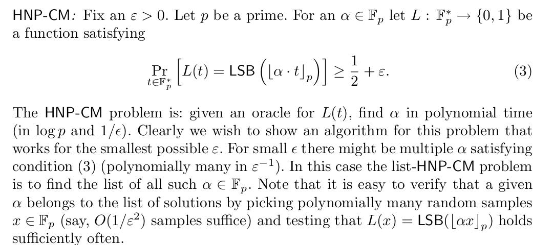 thus, as summarized in (Boneh & Shparlinski, 2001), guessing the LSB and MSBs eventually leads to the correct LSB.