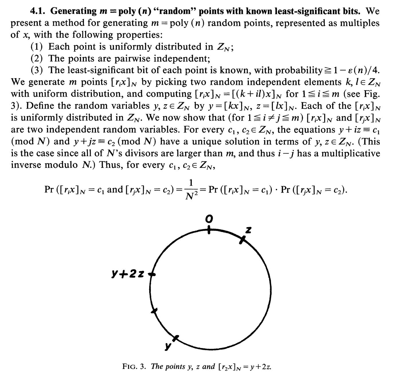 def GenerateRList(u, v, m, p): r = [] for i in range(1, m+1): r_i = (i * u + v) % p r.append(r_i) return r(Alexi et al., 1988) prove the ‘randomness’ of r as: