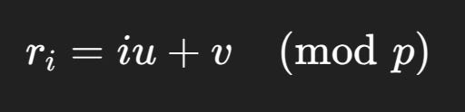 r_i = (i * u + v) % p