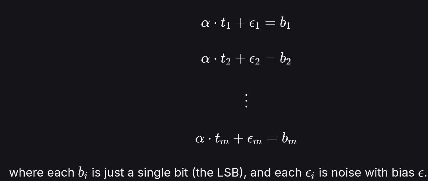 The paper ends here. We’re able to guess the LSBs at certain points and this permits us recover alpha without performing lattice reduction.
