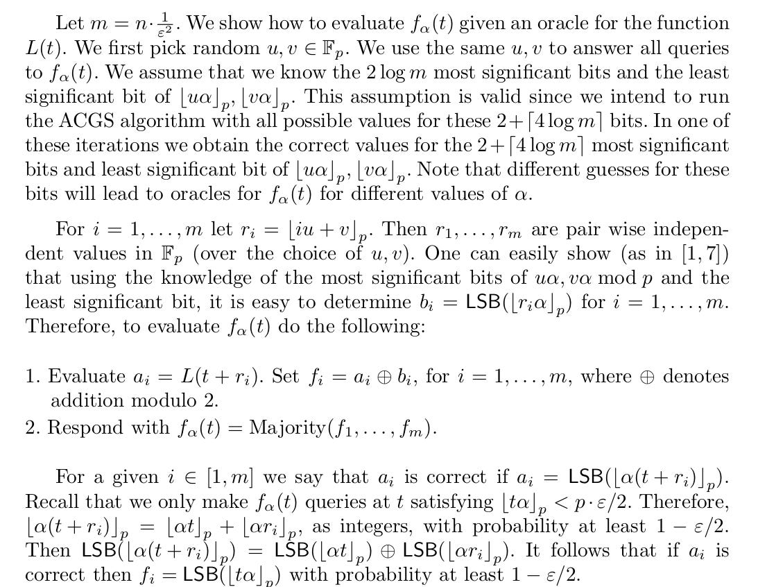 The 1988 paper RSA and Rabin Functions: Certain Parts are as Hard as the Whole (Alexi et al., 1988)1 introduces the Alexi-Chor-Goldreich-Schnorr (ACGS) algorithm for polynomial-time solutions to Hidden Number Problems with Chosen Multipliers (HNP-CM) (Boneh & Shparlinski, 2001)2.