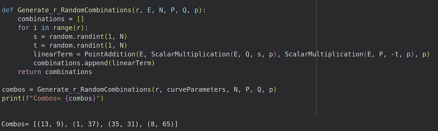 Next we find random sums of the form Pp,i = siQ - tiP where P is our generator and Q is the point with the secret key.