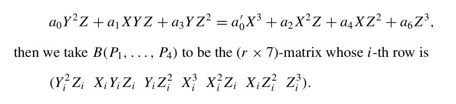 We use the Weirestrass form of the curve so our B matrix has dimension r∗7.