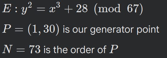 What happens if we actually found linearly dependent points? We can solve for our secret key like this: