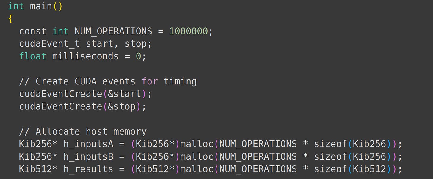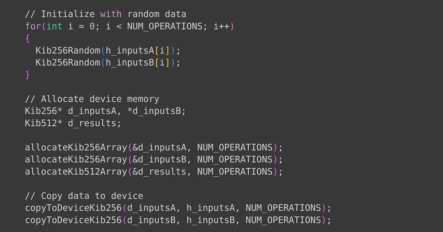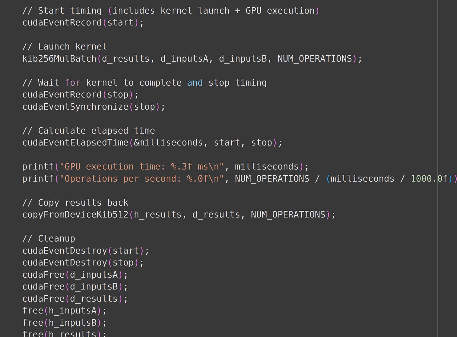 Finally, we add code to handle GPU threads and allocate GPU memory for our structs. Tbh, I didn’t expect it to be this easy.