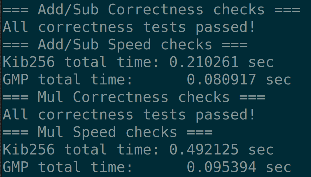 LibGMP absolutely mogs our code. However, our implementation is correct and that’s all that matters lol*.