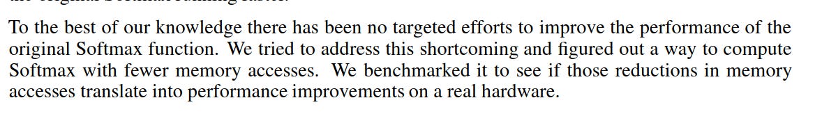 However, it requires three passes over the input vector (Milakov & Gimelshein, 2018). This translates to 4 memory access per vector element overall.
