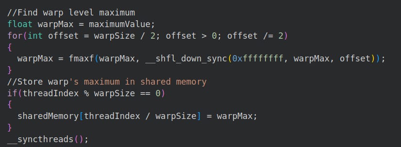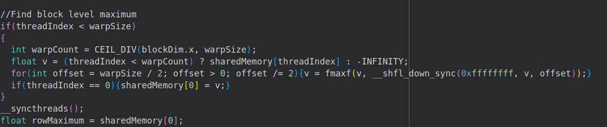 Now that we have the warp maximum we can find the current block (matrix row) max.
