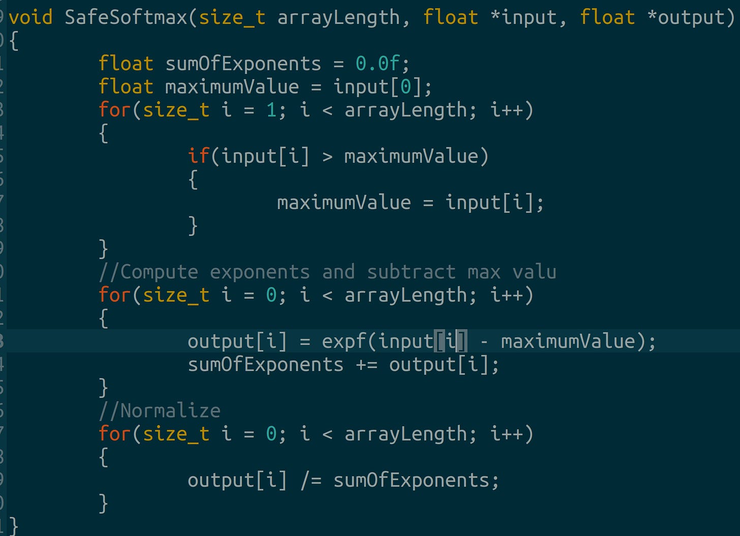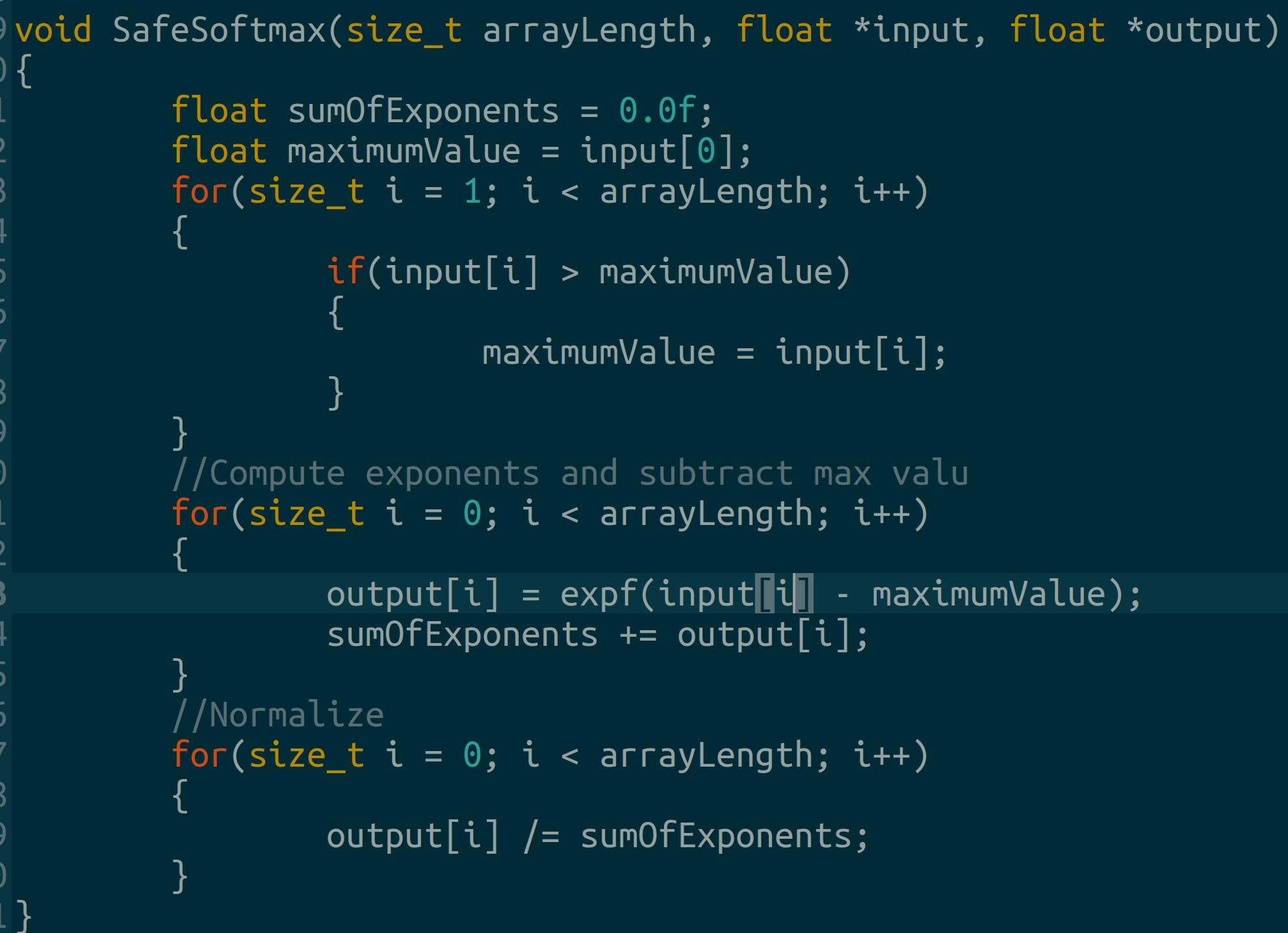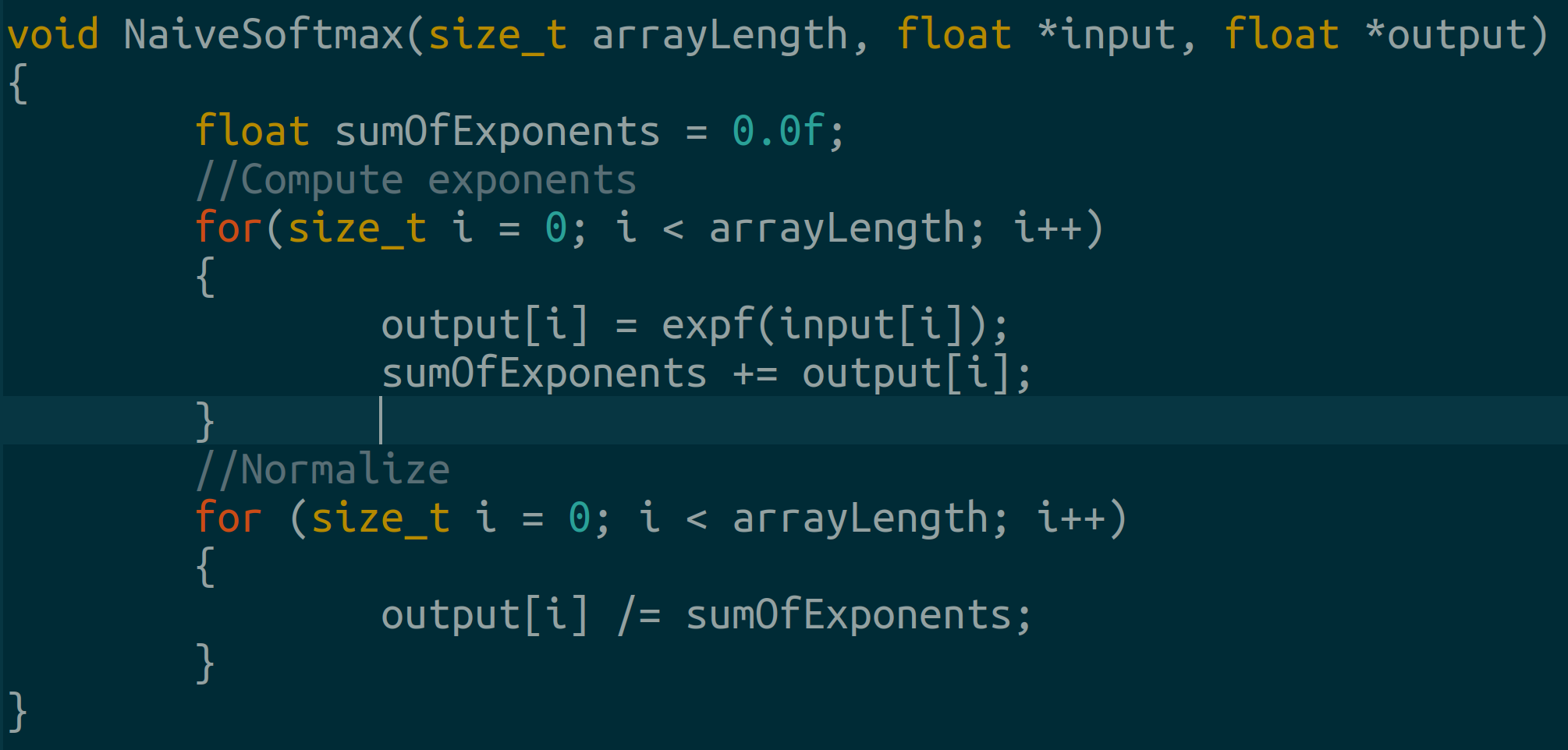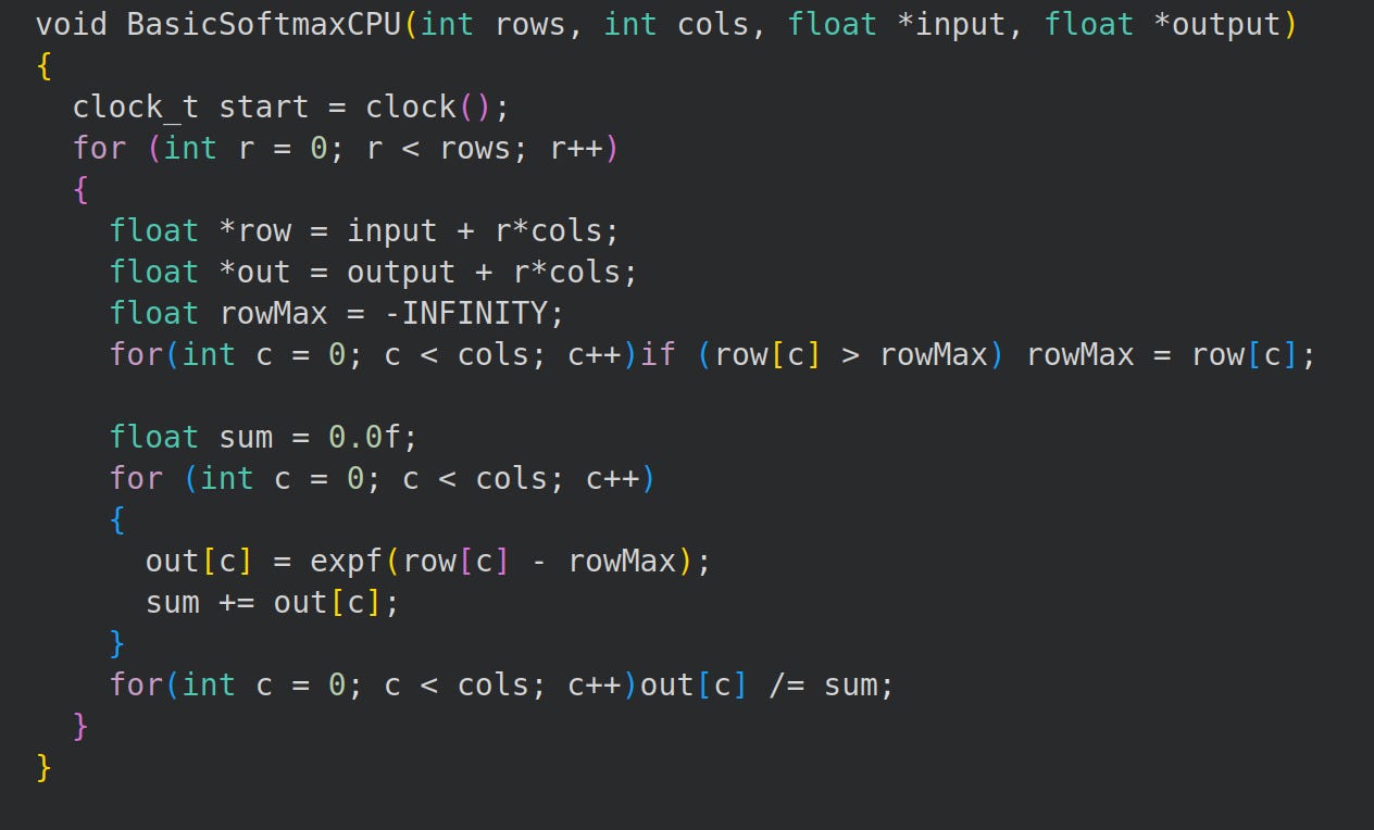 First we write a basic CPU softmax for later comparison.