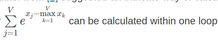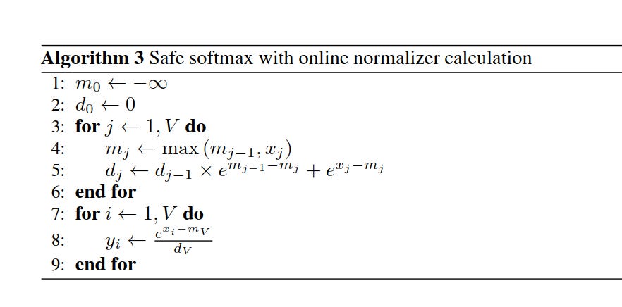 The authors use a pretty clever trick to calculate the online normalizer in one loop (Tianlong, 2025).