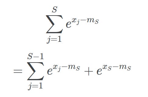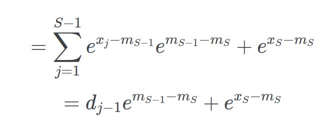 Finally, substituting mS-1 into our equation proves that online softmax is equivalent to the safe softmax: