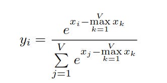 We write the original softmax that suffers from overflow/underflow as: