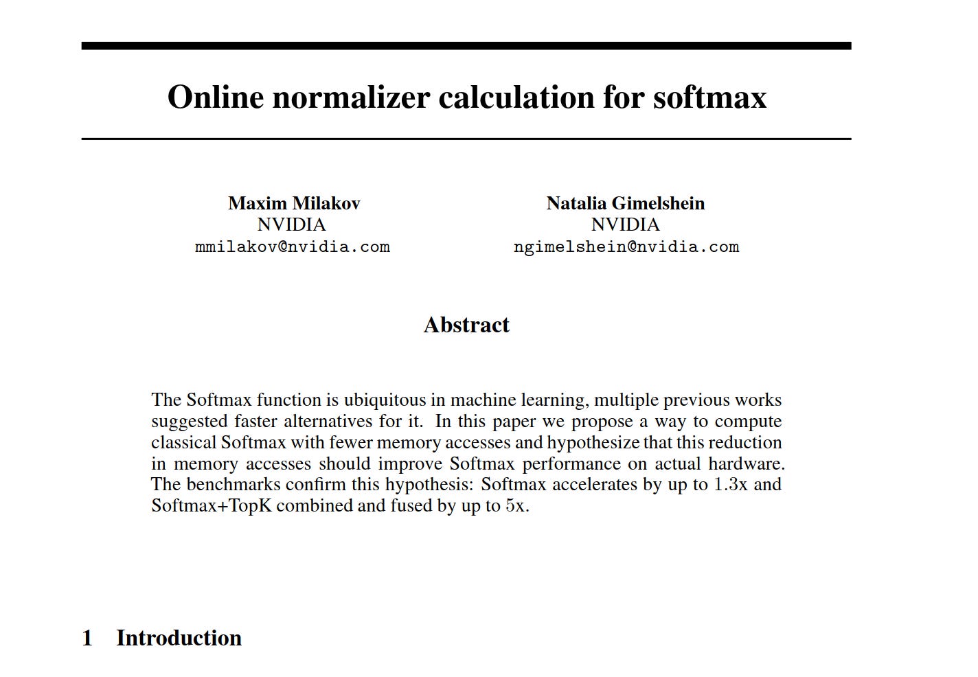 Milakov, M., & Gimelshein, N. (2018). Online normalizer calculation for softmax. arXiv preprint arXiv:1805.02867. https://arxiv.org/abs/1805.02867