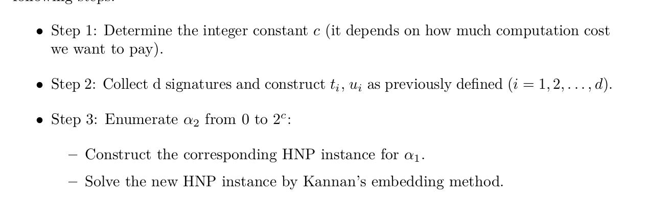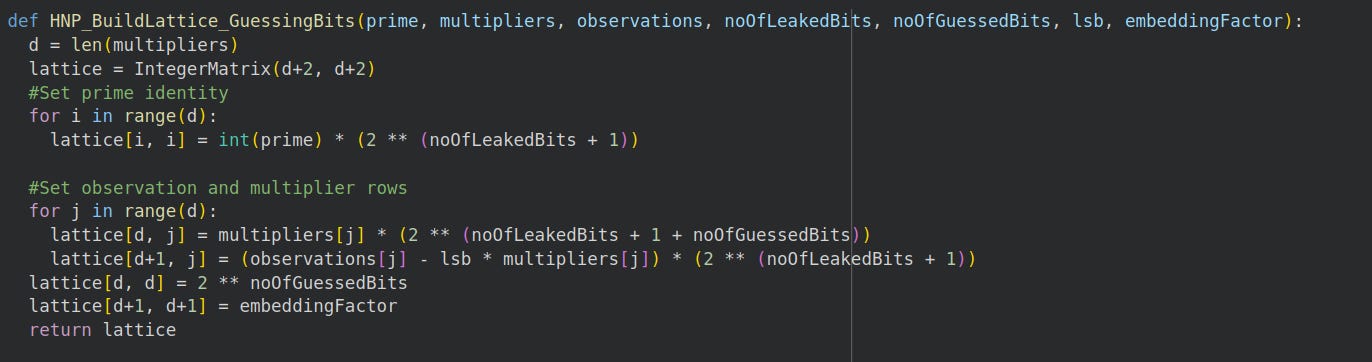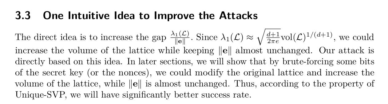The authors further borrow the ‘remove the first row’ technique from part 1’s (Albrecht & Heninger, 2020) lattice and call this the projected lattice technique.