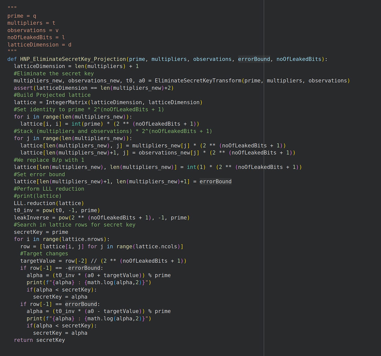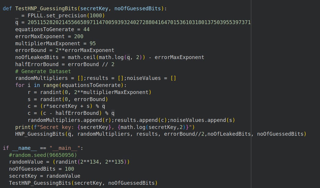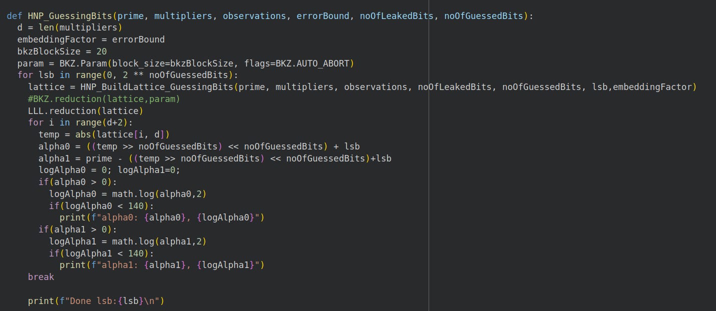 Part 1: We coded the 1996 paper on the Hidden Number Problem as well as the 2020 paper that improves on the LLL solution.