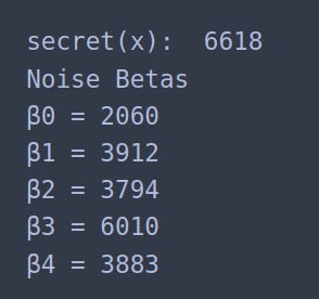Step 1: Define a secret key (x) alongside a set of 5 possible noise terms (βi):