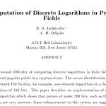 Howell, S,. J,. (1998). The Index Calculus Algorithm for Discrete Logarithms. Clemson University Masters Thesis.