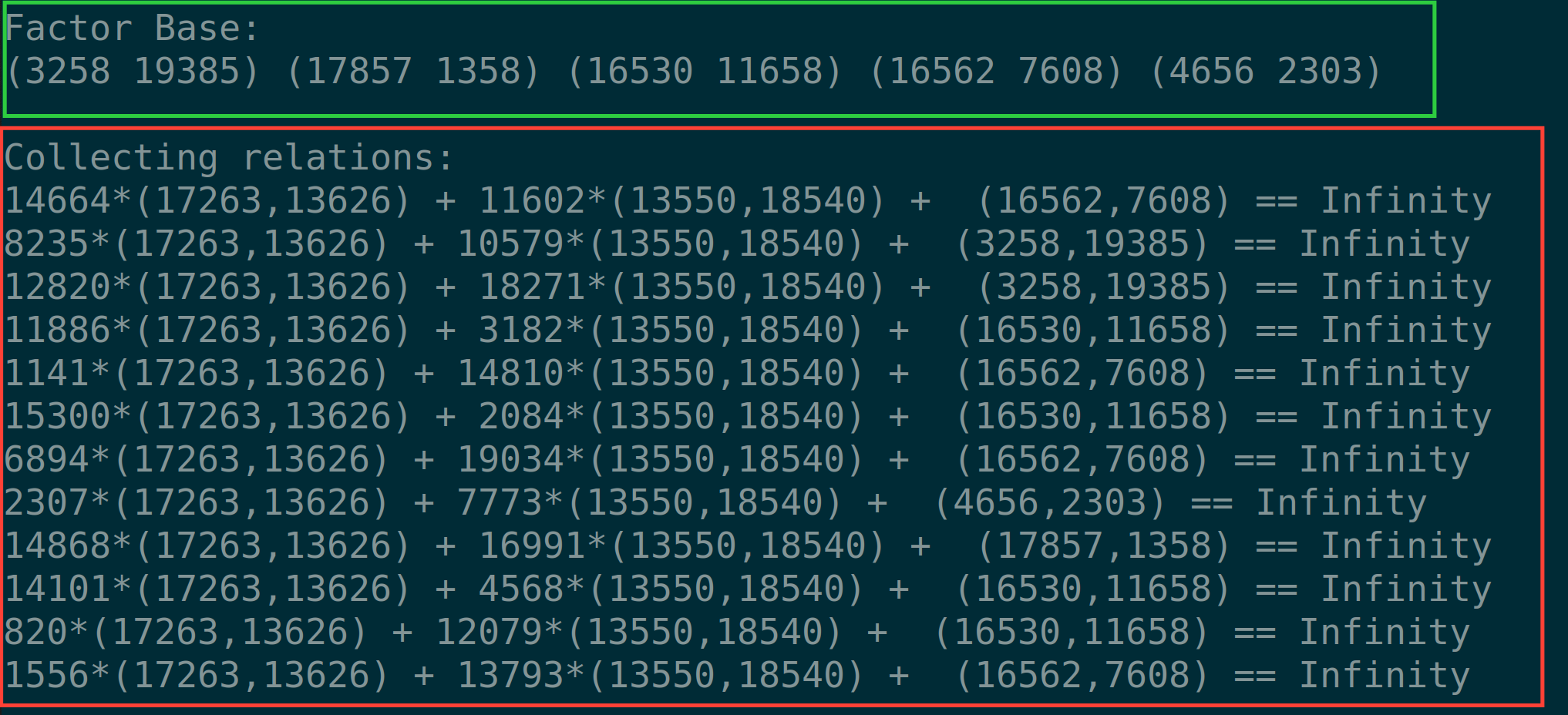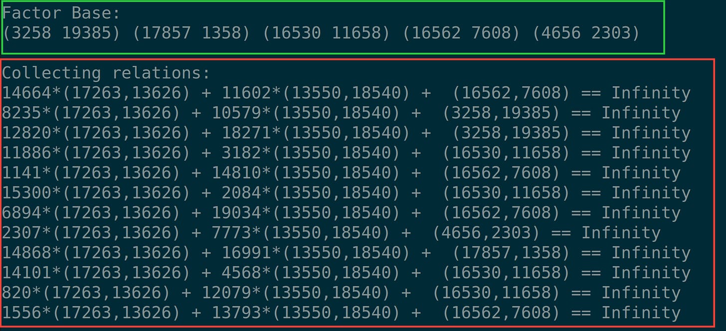 Finding relations is the hardest part. Now we can solve a linear system modulo the generator points order (not the field characteristic).