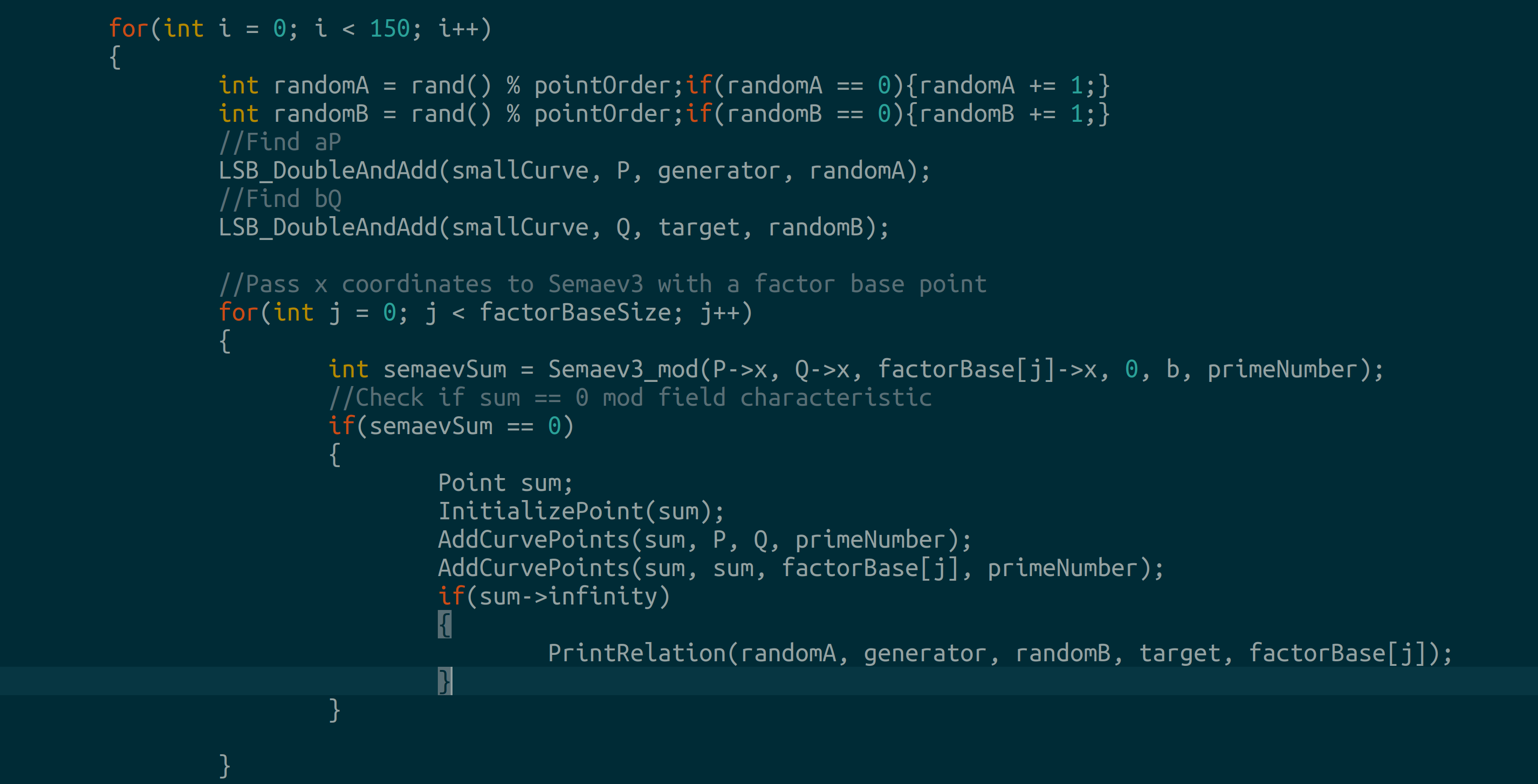 In practice, we pass the x-coordinates of multiples of P, Q and a search within our factor base for a valid point with our Semaev functions.